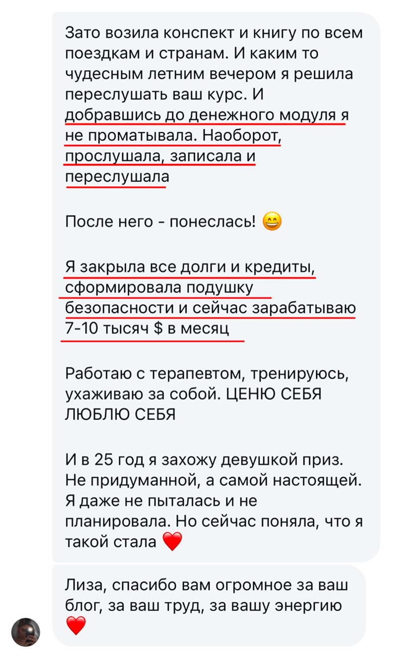 Проработала все то, что не пускало к увеличению дохода и тому уровню жизни, который ты себе представляла. Теперь ты знаешь, чего никогда не нужно делать.