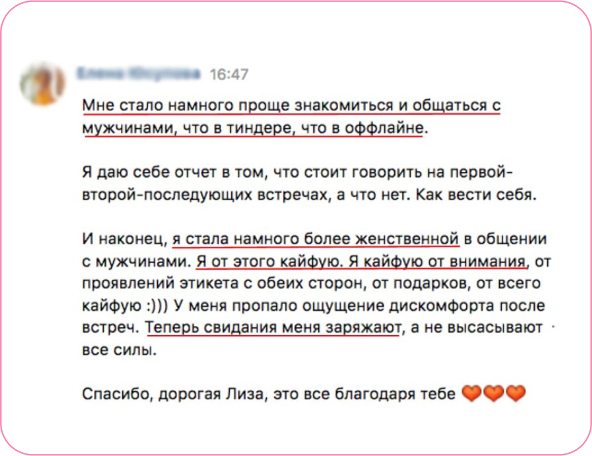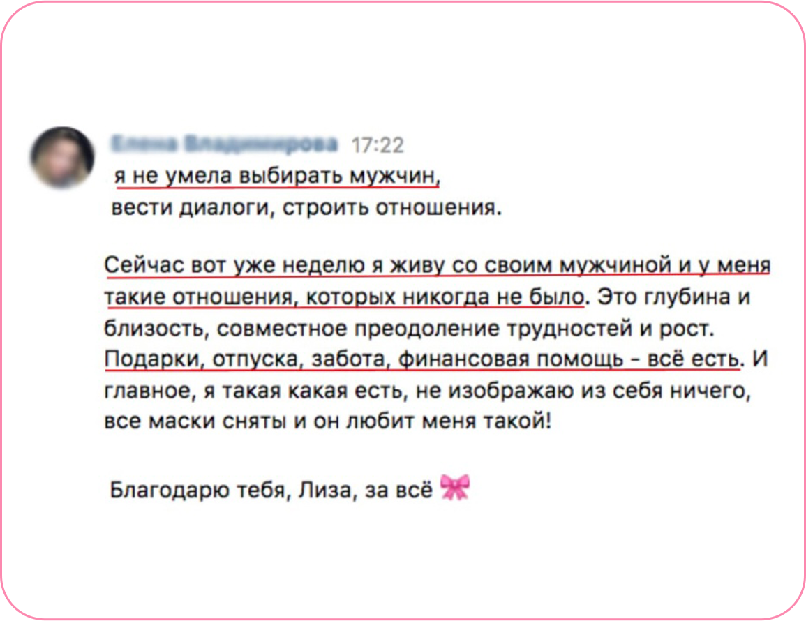 — Помогла более 3000 девушкам найти и прокачать себя, обрести крепкие отношения